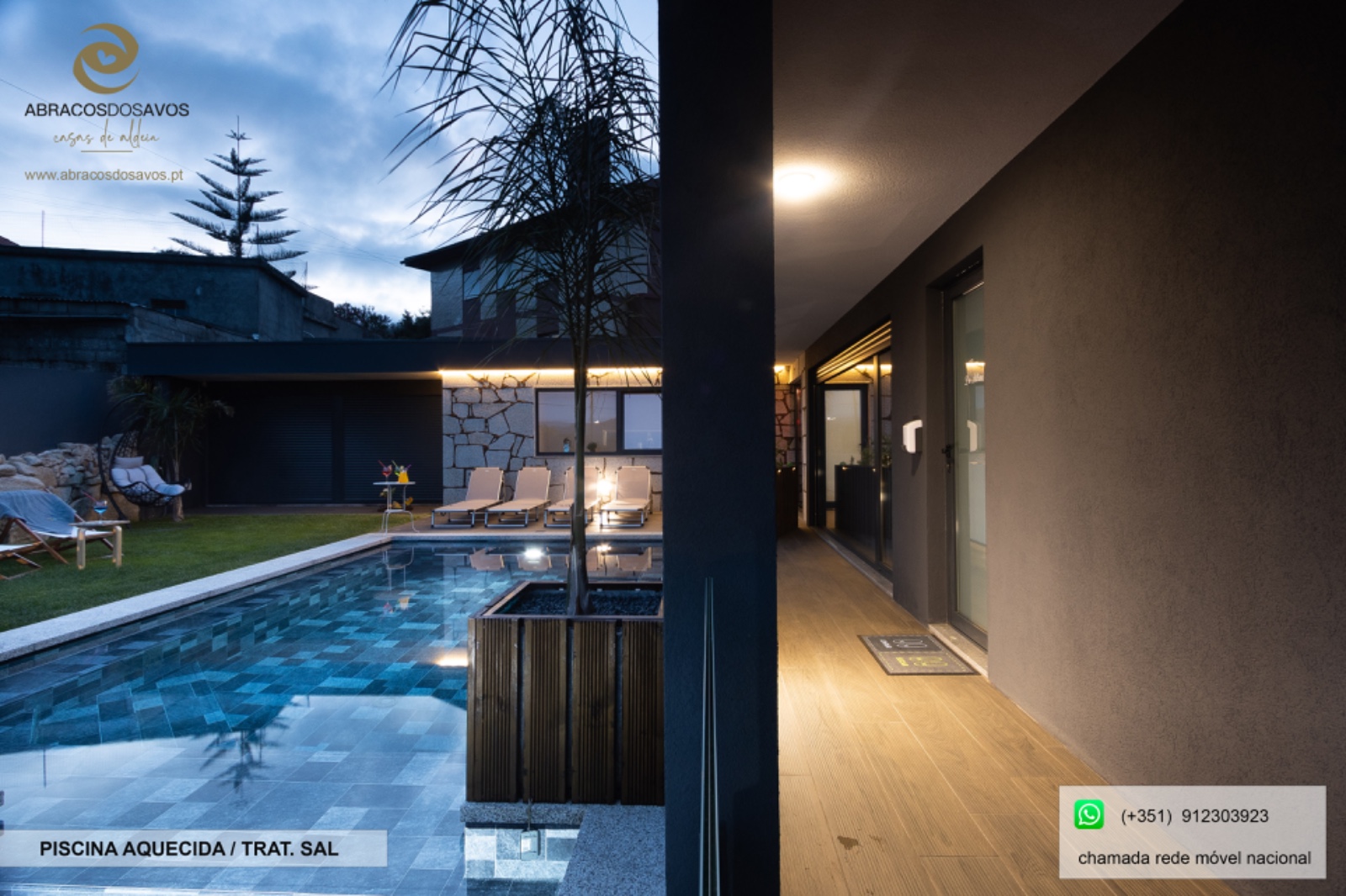 Possui uma piscina aquecida (28ºC) de água salgada com cascata, comum a ambas habitações (Disponível de Março a Outubro). Uma exposição solar imperdível mais um ambiente tranquilo e aprazível torna as casas dos Abraços dos Avós no local ideal para umas férias ou fim de semana de sonho.